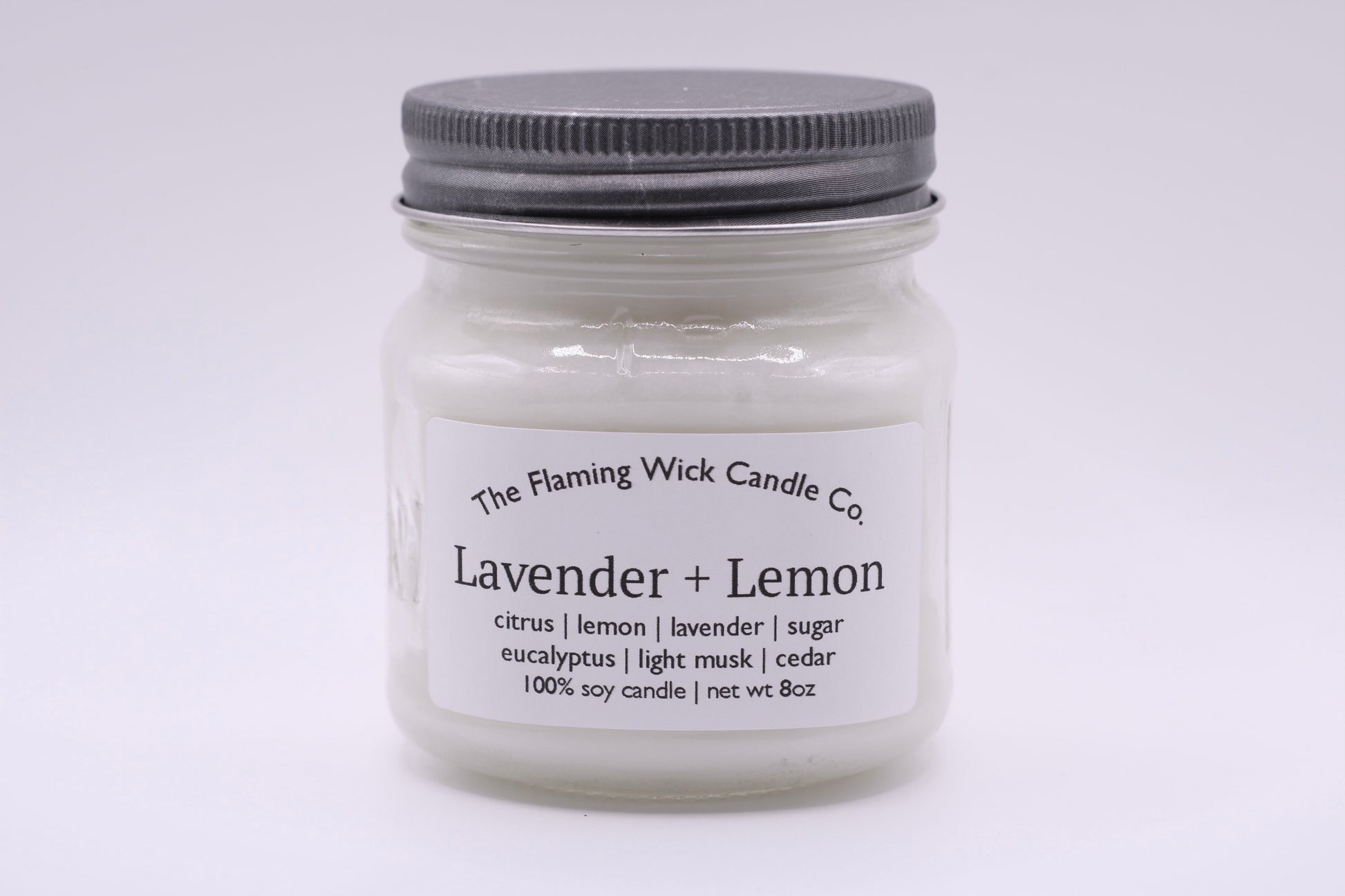 All candles are made of 100% US grown soy wax and hand poured using phthalate free non-toxic fragrance oils and lead free cotton wicks. Burn time is approximately 40-45 hours for our 8oz.
